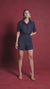 Conjunto de short e camisa em tom azul marinho, com design elegante e moderno. A camisa possui mangas curtas, bolsos frontais com zíper e botões decorativos, além de pespontos aparentes em tom contrastante que valorizam a peça. O short tem modelagem estruturada, bolsos funcionais...