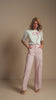 Blusa off white de mangas curtas com bordado em aviamento e pérolas formando um laço na parte frontal. Delicada e feminina, é uma peça sofisticada que adiciona charme e elegância ao look.