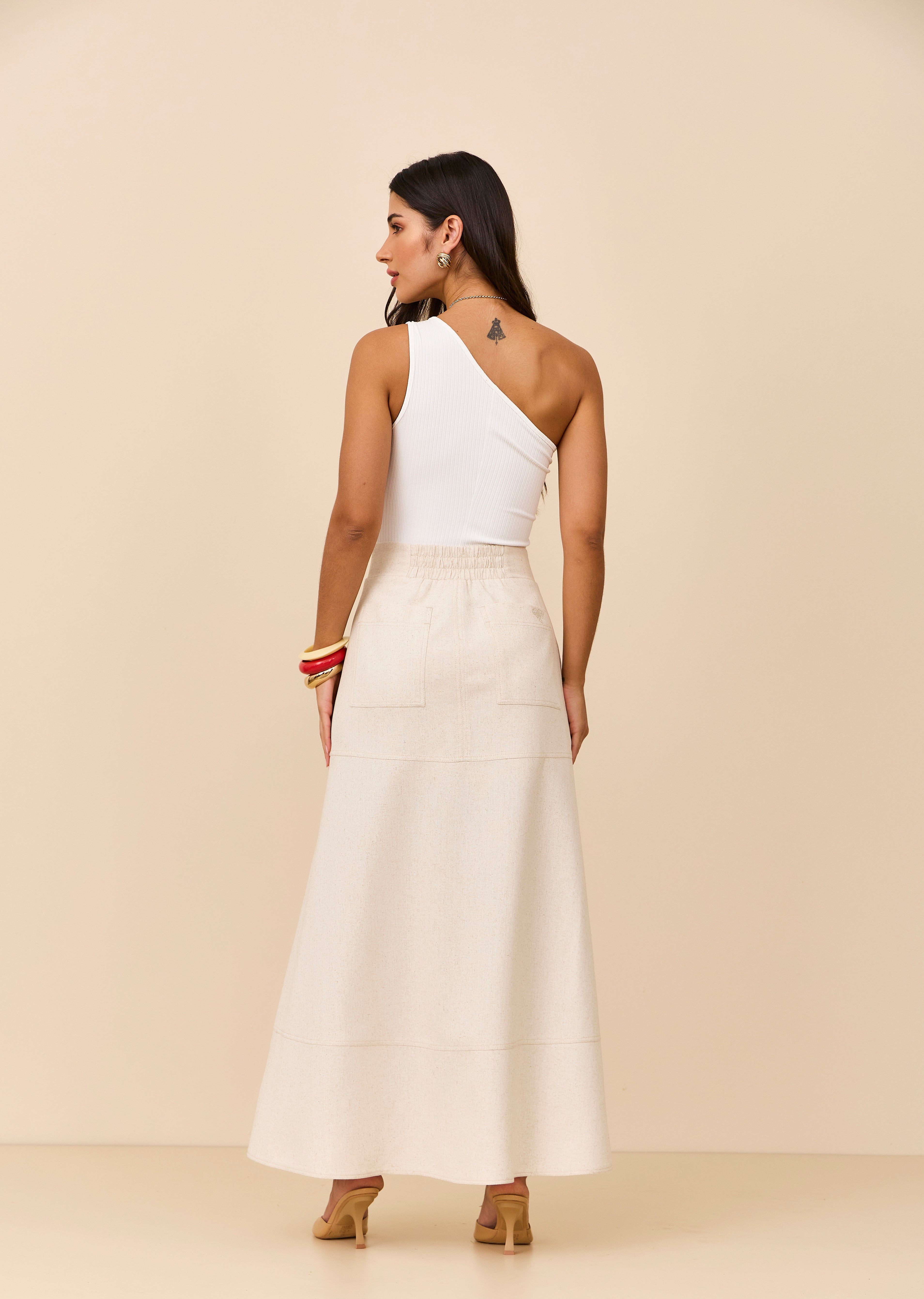 Body canelado off white de um ombro só, com delicados detalhes em telinha vazada que deixam a pele à mostra de forma sutil e elegante. Uma peça moderna, feminina e super delicada, perfeita para compor looks sofisticados.