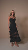 Conjunto de top e saia longa preta confeccionado em tecido leve e fluido, com delicados detalhes em tule e babados que trazem movimento e sofisticação à peça. Um look elegante, feminino e cheio de charme, perfeito para ocasiões especiais.