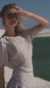 Conjunto de calça e blusa de mangas curtas no tecido listrado em tom marrom delicado. A calça cargo traz um toque moderno, enquanto a blusa com bordado frontal adiciona charme artesanal à produção. Um look estiloso e versátil, perfeito para quem valoriza elegância com personalidade.