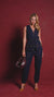 Conjunto de short e camisa em tom azul marinho, com design elegante e moderno. A camisa possui mangas curtas, bolsos frontais com zíper e botões decorativos, além de pespontos aparentes em tom contrastante que valorizam a peça. O short tem modelagem estruturada, bolsos funcionais e acabamento com os mesmos pespontos, criando um visual sofisticado e cheio de personalidade. Um conjunto super chique, versátil e atemporal.
