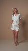 Conjunto de camisa de manga curta e short no tom off white, inteiramente bordado, com acabamento delicado e sofisticado. Uma proposta super elegante, leve e atemporal.