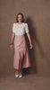 Conjunto delicado e elegante composto por blusa em tecido leve com bordados em destaque na parte frontal e posterior, trazendo um toque artesanal e sofisticado, além de mangas curtas e modelagem confortável. Acompanha saia midi em alfaiataria no tom rosa, com caimento impecável, bolso utilitário lateral e fenda frontal que valoriza o movimento, resultando em um visual feminino e moderno.