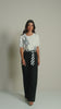 Conjunto composto por calça preta e blusa off white com delicados bordados em tom preto. Um look elegante e atemporal, que combina contraste, leveza e sofisticação na medida certa.