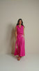 Conjunto pink chique composto por blusa cavada com detalhes de botões frontais e saia midi com bordado em aviamento cru formando delicadas flores. Um look elegante e moderno, que combina cor, textura e sofisticação na medida certa.