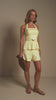 Conjunto no tom amarelo manteiga — super tendência — composto por short e blusa frente única que amarra no pescoço, com leve efeito peplum que valoriza a silhueta. Acompanha faixa no mesmo tecido com fivela em formato de concha, trazendo um toque sofisticado e elegante. Um look leve, moderno e perfeito para o verão.