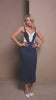 Vestido midi em canelado power no tom azul-marinho, com recortes em off que criam um contraste elegante e moderno. Possui detalhe de zíper frontal no busto, trazendo um toque sofisticado e contemporâneo à peça.