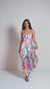 Vestido longo, leve e fluido, com estampa exclusiva Artsy inspirada na beleza natural dos Lençóis Maranhenses. A peça combina movimento e sofisticação em um design que valoriza o corpo com delicadeza. Um modelo que traduz o frescor e a elegância dos dias de verão com arte e leveza.