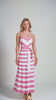 Vestido midi — elegante e delicado, o modelo combina o charme do bloco de cores em off e rosa, criando um visual moderno e feminino. Acompanha faixa para marcar a cintura e valorizar a silhueta, além de alças com ponteiras que adicionam um toque sofisticado aos detalhes. Uma peça leve e refinada, ideal para ocasiões que pedem estilo e sutileza.